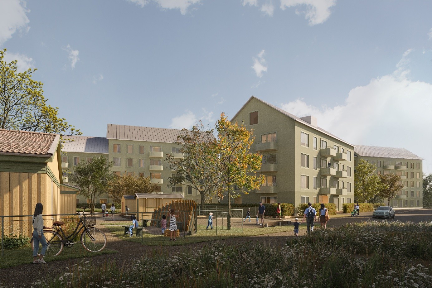 Bostäderna certifieras enligt Miljöbyggnad Silver 4.0 och kompletteras med energieffektiva lösningar som solceller, effektiv värmeförsörjning och mobilitetsåtgärder. Projektet blir ett av få större infill-projekt med hyresrätter i Stockholm. Byggstart beräknas till september 2026 med inflyttning från maj 2028.